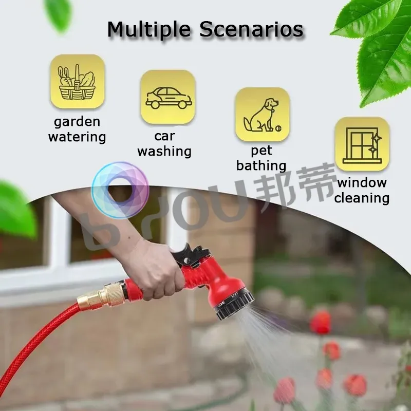 The set includes a hose, nozzle, color box. The hose that automatically expands when water flows, allowing you to include more watering points effortlessly. It is perfect for users seeking a practical solution for cleaning and maintaining their garden.