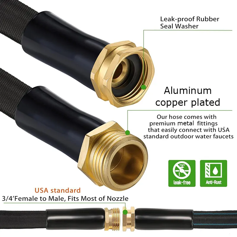 【widely used】The hose has a protective sleeve on both ends Make your garden hose more durable and ensure a better and more stable water flow. This hose has standard U.S. size connections (3/4-inch male and female) Wide range of applications with versatility and seamless compatibility with a wide range of nozzles, watering gardens, and cleaning homes, cars, outdoor and yards to bathing pets, it excels, truly enhancing convenience in daily chores and gardening tasks.